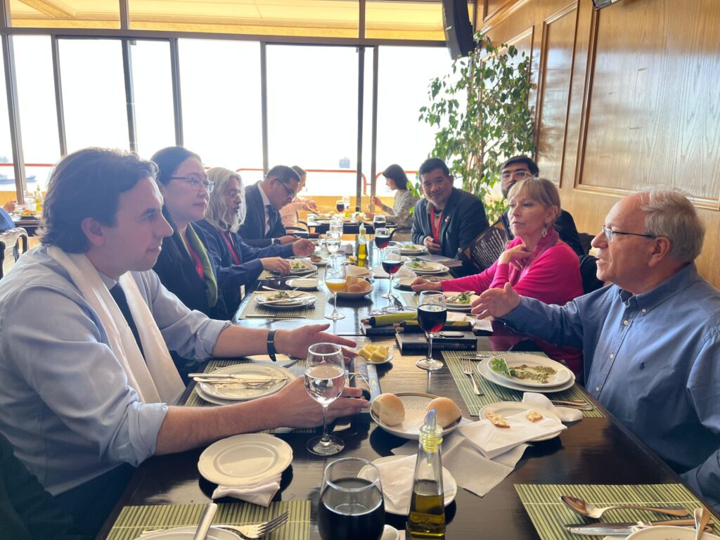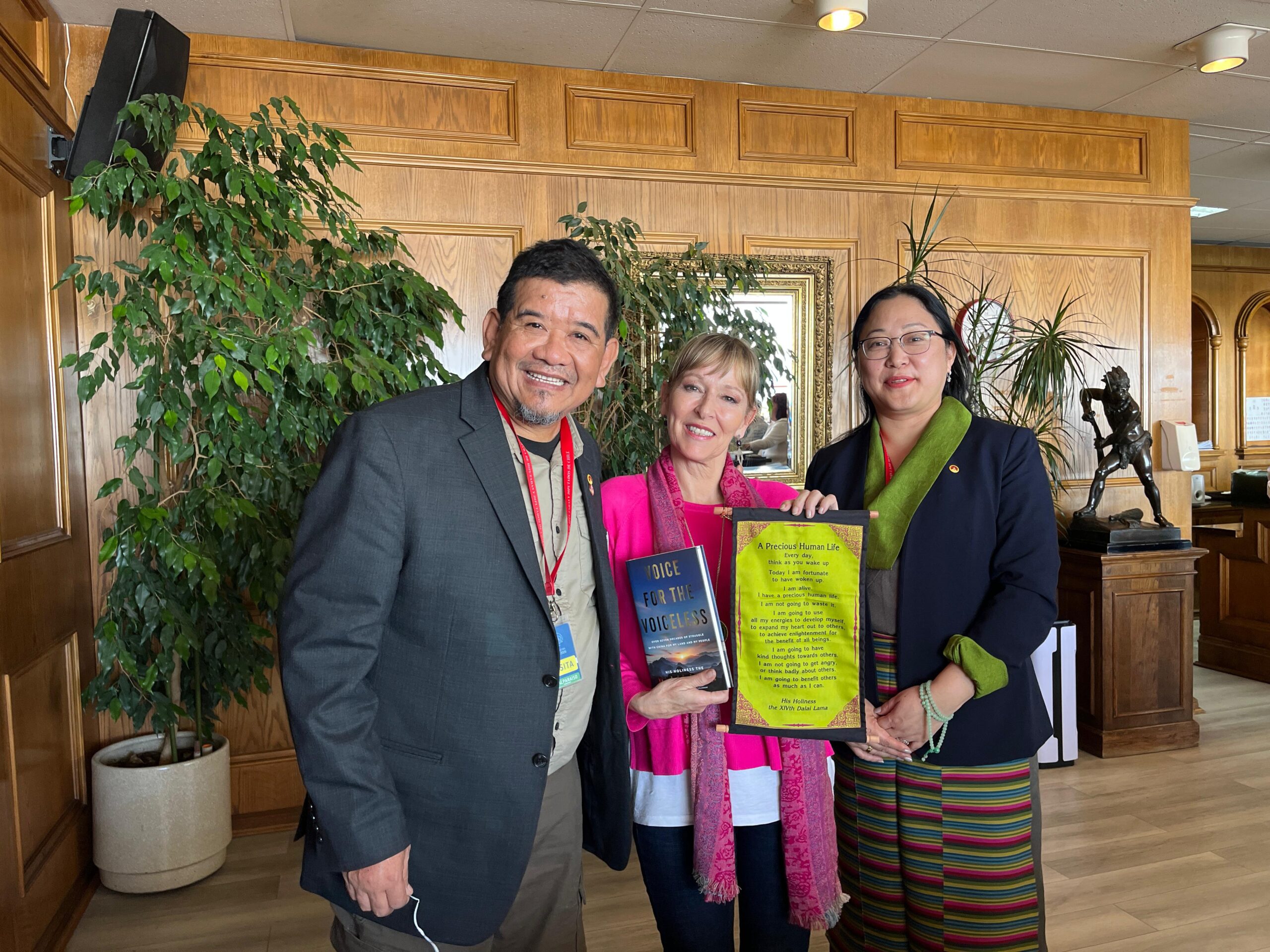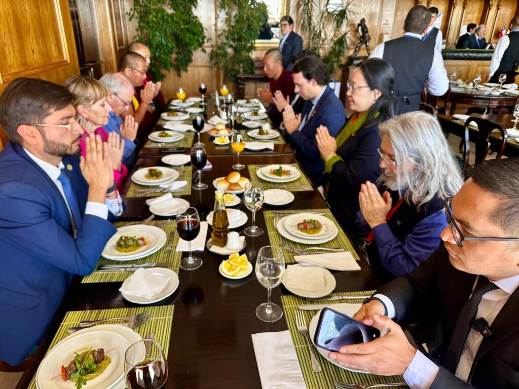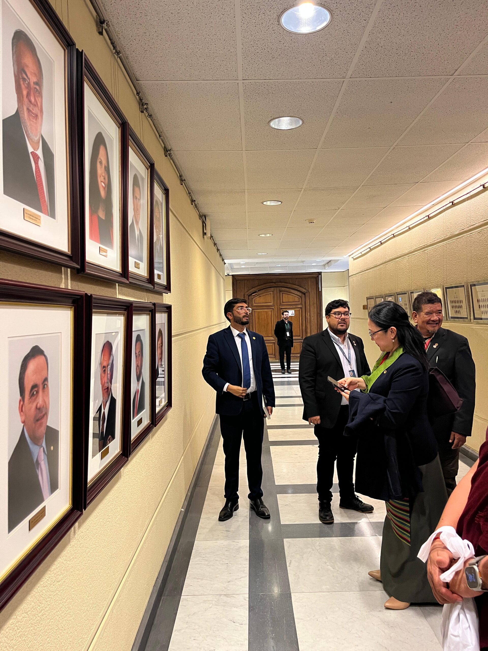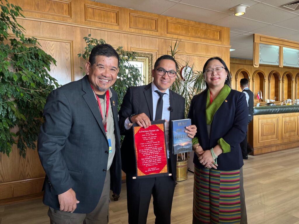 En un almuerzo de trabajo realizado en la terraza del edificio del Parlamento, la ministra se reunió con los diputados Vlado Mirosevic, Tomás Hirsch, Ana María Gazmuri, Luis Malla Valenzuela, entre otros, así como con Fernando Salinas, presidente de la ONG Amigos del Tíbet, Chile. Norzin Dolma agradeció el apoyo de los parlamentarios, ofreció un informe sobre la situación actual en el Tíbet, en particular sobre la cuestión de la reencarnación de Su Santidad el Dalái Lama y la importancia de la conciencia y responsabilidad internacional. Obsequió a cada invitado con un broche conmemorativo de los 90 años, el libro “Voice for the Voiceless” (Voz para los Sin Voz) y un pergamino con citas de Su Santidad.