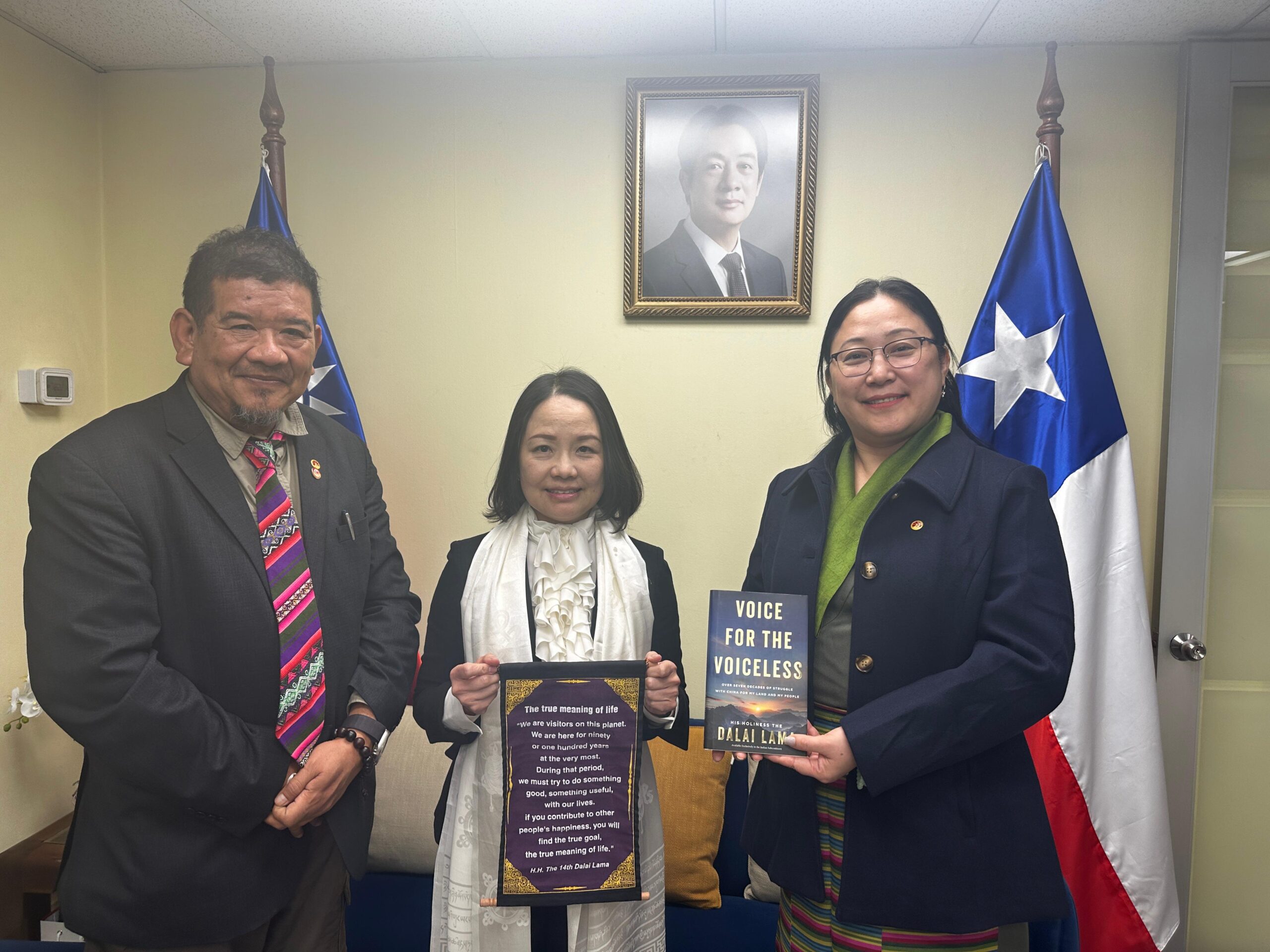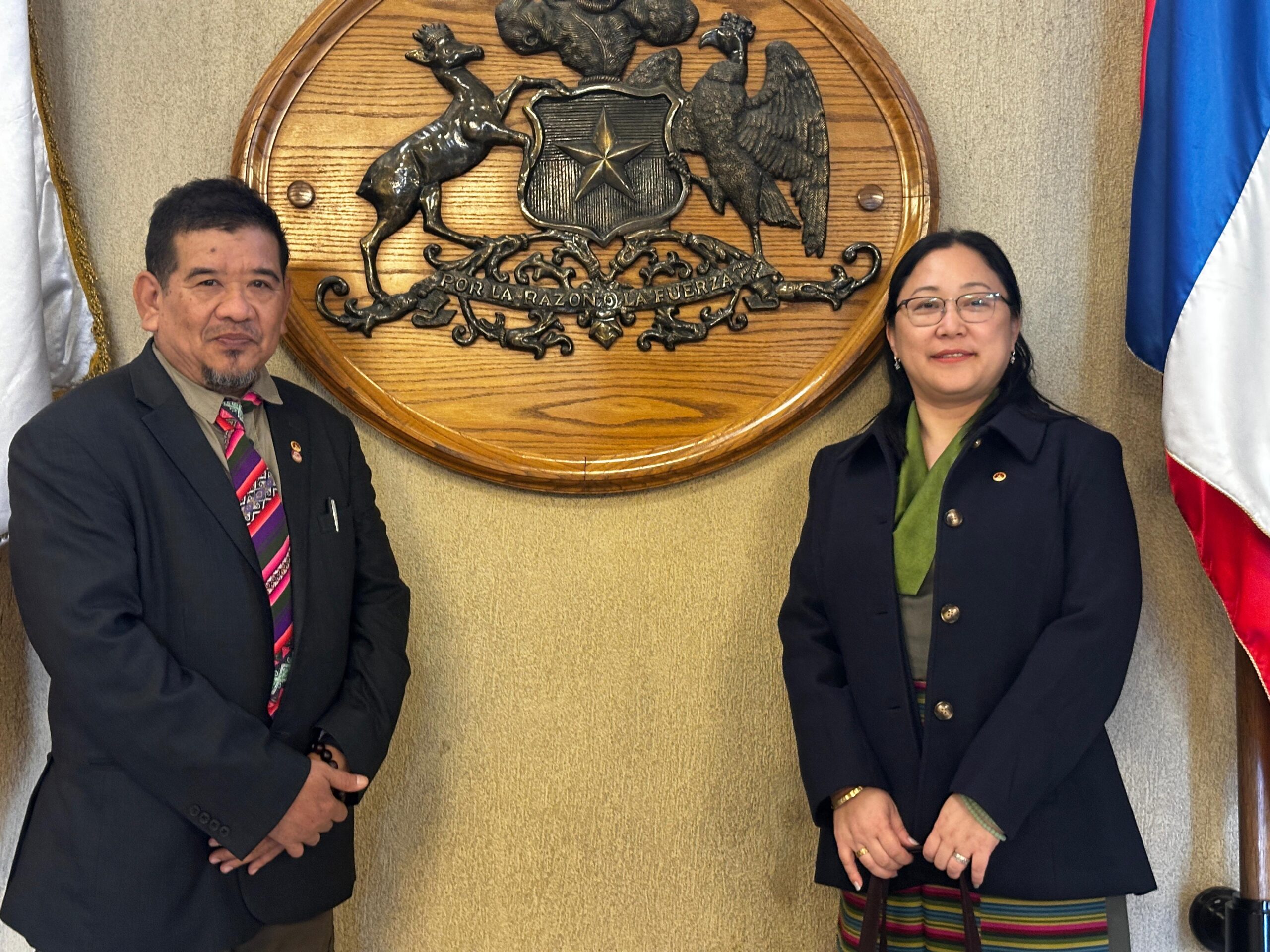 Antes de partir hacia Arica, Norzin Dolma también sostuvo un encuentro de cortesía con Liu Yu-chi, Jefe de Misión de la Oficina Económica y Cultural de Taipéi en Santiago. Con motivo del 80º aniversario de los bombardeos de Hiroshima y Nagasaki, ambos compartieron reflexiones sobre el trágico costo de la guerra y el valor de la paz, intercambiaron reconocimientos mutuos y dialogaron sobre las luchas y aspiraciones comunes de sus pueblos por la libertad, la democracia y la preservación cultural.